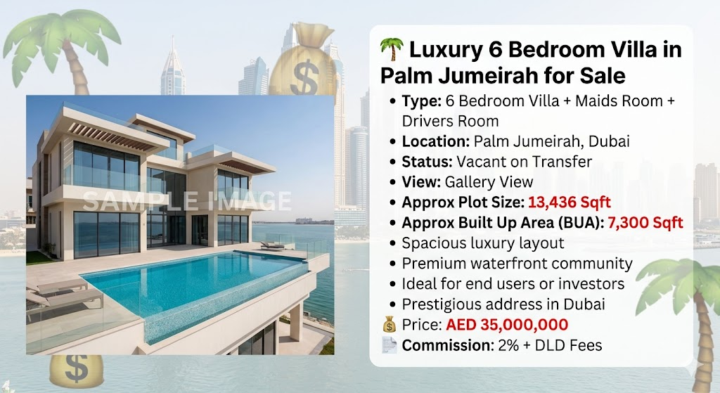 #PalmJumeirah #DubaiLuxuryRealEstate #DubaiVillaForSale #WaterfrontVillaDubai #DubaiPropertyInvestment #LuxuryVillaDubai #DubaiRealEstateMarket #InvestInDubai #DubaiLuxuryLiving #PrimeDubaiProperty