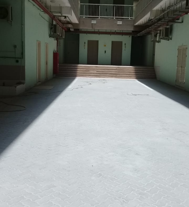 Plot Area: 20,000 Sq. Ft BUA: 77,700 Sq. Ft G+3+Roof Total Rooms: 219 for 700 staff Total Toilets (Asian & Western): 102 Total Showers & Washbasin: 102 Amenities 4 Staircases with granite steps Massive Kitchen and Dining area Solar Water Heaters with large reserve tanks Individual A/C for every room LED lighting all over Prayer Room TV Room