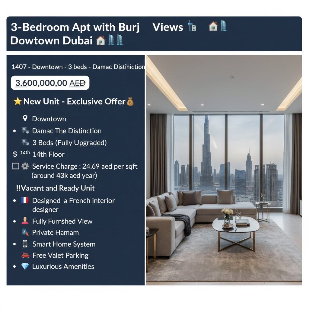• Modern 3-Bedroom Apartment with Burj Khalifa View
