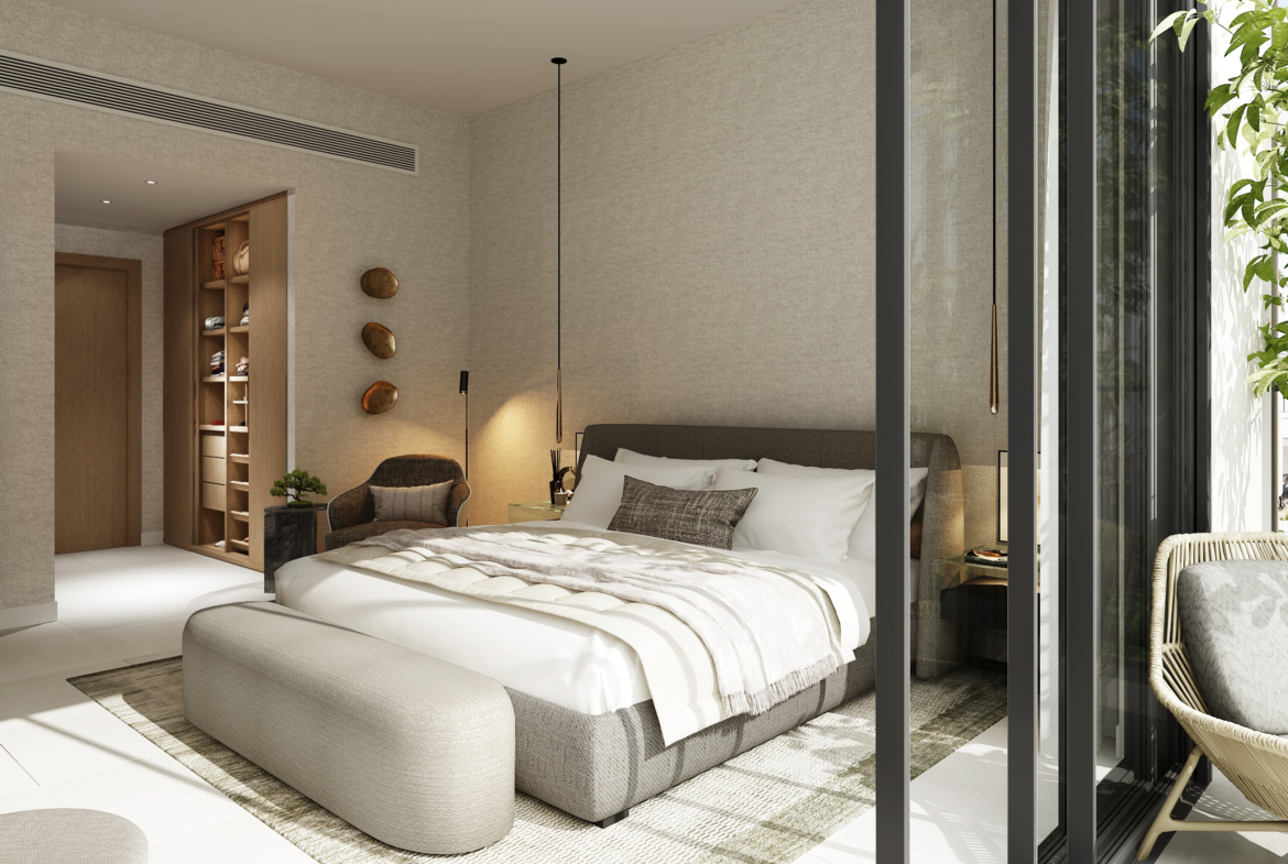 Residents can choose between 2 finishing options for their unit, with either a dark or light colour scheme. The balcony doors in the living room can be opened fully and lead to a backyard with garages situated at the front of homes and equipped with electrical doors and car chargers. Jebel Ali Village townhouses are fitted with floor-to-ceiling windows.
