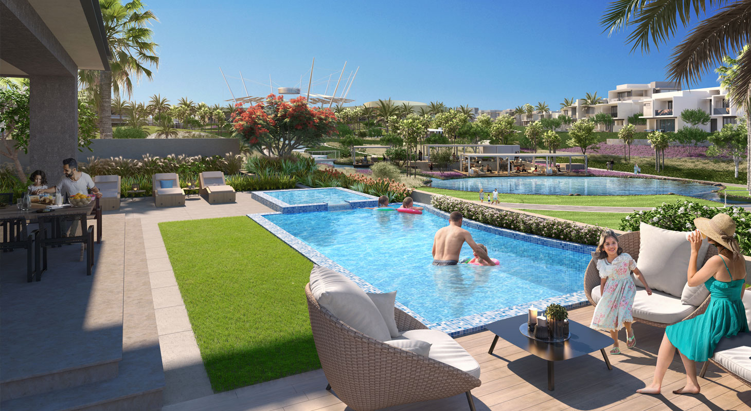 The new, gated Jebel Ali Village seamlessly marries the values of a charming heritage and a new perspective. A contemporary mood is brought to life through the layout, design and landscaping. Four- and five-bedroom villas, all with single row exclusivity, feature spacious back yards and garages with electric car chargers.